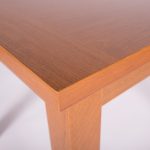 Masa Reine Teak este alegerea perfectă, atunci când vrei să economisești spațiu. Cu picioare și structură din panouri furniruite, are blatul înnobilat cu furnir natural de fag