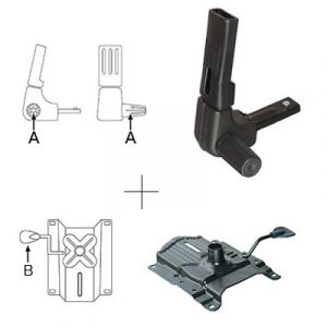 Mecanism scaun ergonomic ”MEK” cu funcție de reglare a înălțimii șezutului și reglare a spătarului în diverse poziții. Funcții mecanism: 1. reglarea înălțimii șezutului (B) 2. reglarea spătarului cu ajutorul unui șurub de prindere în diverse unghiuri față de șezut. (A) 3. rotație șezut