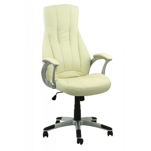 Scaun ergonomic OFF 354 este un model foarte confortabil, tapitat cu piele ecologica disponibil in doua variante de culori, avand baza si manerele realizate din plastic dur, vopsit intr-o culoare ce imita aluminiul, iar manerele fiind tapitate de asemenea cu piele ecologica de culoare spatarului si sezutului. Mobilitatea Scaunului ergonomic OFF 354 este data de catre rolele ce sunt atasate bazei in forma de stea. Reglajul pe inaltime se efectueaza actionand maneta de sub sezut ce declanseaza comprimarea/decomprimarea amortizorului.