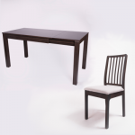 Are cadru și picioare din lemn masiv. Blatul de 20 mm grosime, e înnobilat cu furnir natural. Disponibilă pe finisaje Alb opac, Natur, Nuc, Wenge.