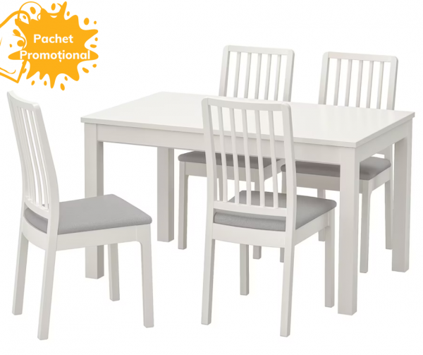 Set Masa Extensibila Roma Alba si 4 Scaune Eva Albe