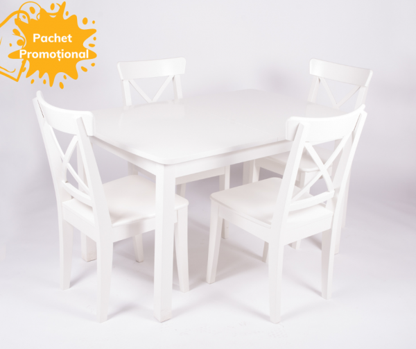 Set Masa Extensibila Roma alba si 4 Scaune Ingrid Albe